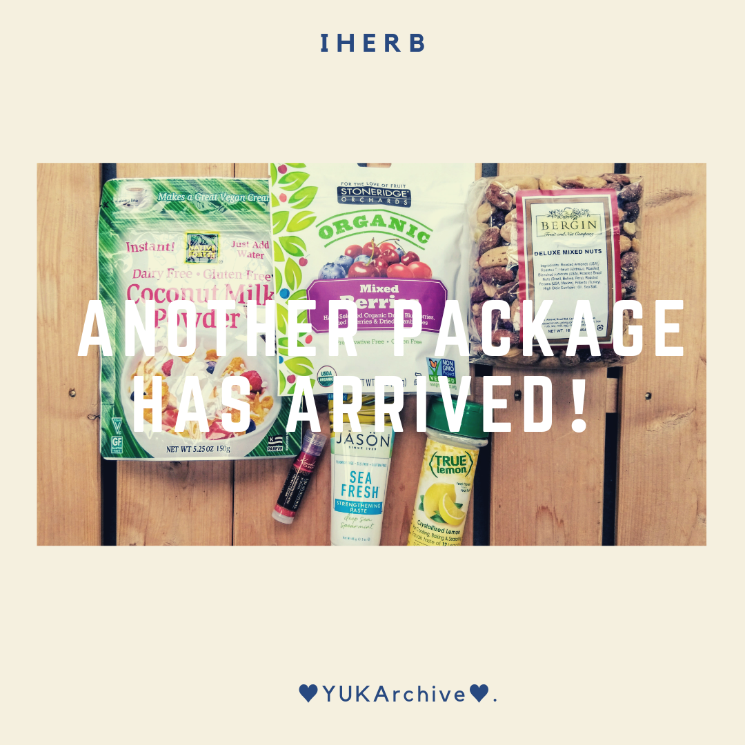 今回の購入品は…ほぼリピート(愛用)品です。 True Lemon結晶化レモンパウダー、コラーゲンココナッツクリーマー、ココナッツミルクパウダー、オーガニックドライミックスベリーJason Natural, 抗歯垢&強化歯磨き粉、Kuumba Made色付きリップセドナ、Bergin Fruit and Nut Company, デラックスミックスナッツ